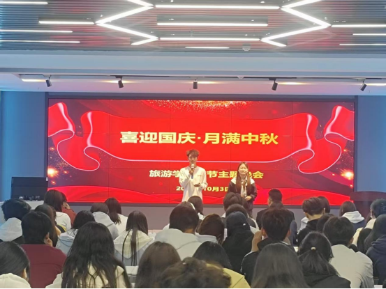 金秋送爽,丹桂飘香。10月3日,在国庆、中秋双节同辉之际,在学校领导的关心与支持下,太阳成集团tyc4633在智慧旅游实训基地成功举办“月满双节·情暖校园”十一假期留校师生联欢晚会。学院党总支书记康爱霞、院长李玉林、办公室主任刘晓丽、教师代表罗涛与留校学子欢聚一堂,共庆佳节,将思想政治教育有机融入文化活动,营造了浓厚的育人氛围。
