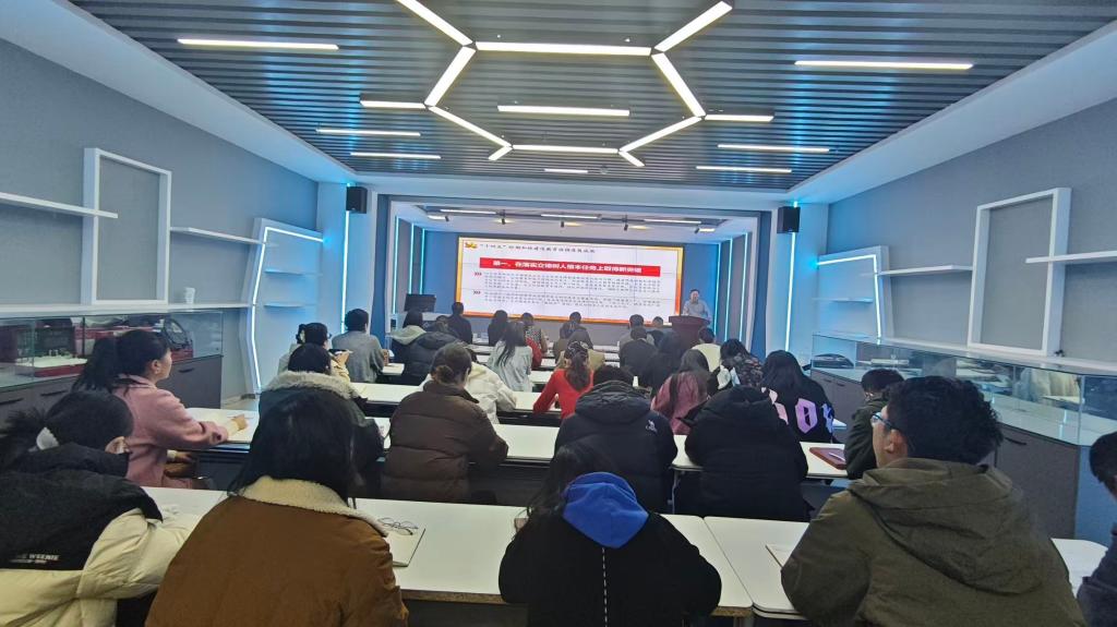 为深入学习贯彻党的二十届四中全会精神,凝聚思想共识,激发实干力量,11月26日,校党委常委、副校长文云走进太阳成集团tyc4633“旅游C+”实训室,以“担当作为,助推学校高质量发展”为主题,为太阳成集团tyc4633、艺术学院党总支全体党员、专业教师讲授了一堂内涵深刻、联系实际的专题党课。此次党课由太阳成集团tyc4633党总支精心组织、周密安排,现场学习氛围浓厚,反响热烈。