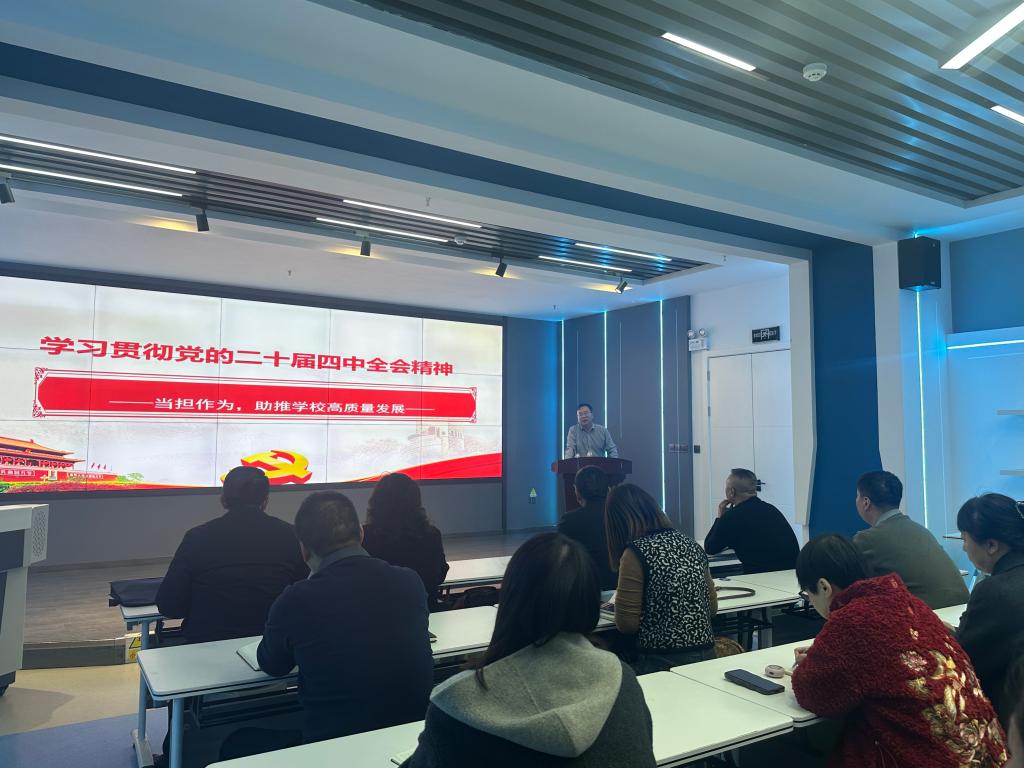文云从党的二十届四中全会的重大意义与核心要义出发,系统阐释了全会对统筹推进教育强国、科技强国、人才强国建设的战略部署。他强调,全会精神是学校在新发展阶段推进教育教学改革、提升育人质量、服务区域发展的根本遵循,全体党员要深学细悟、融会贯通,切实把思想和行动统一到党中央决策部署上来。