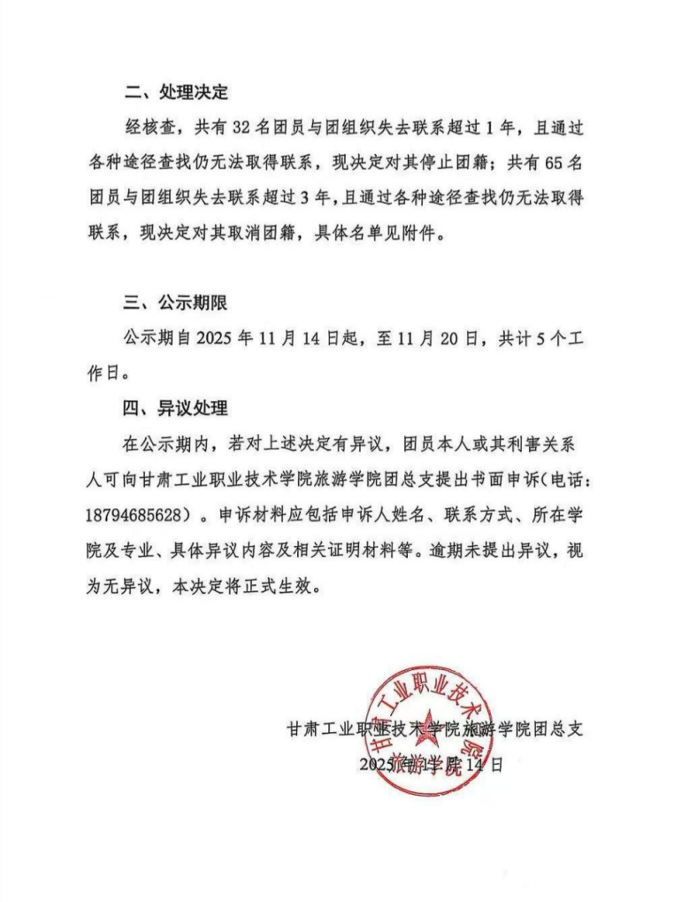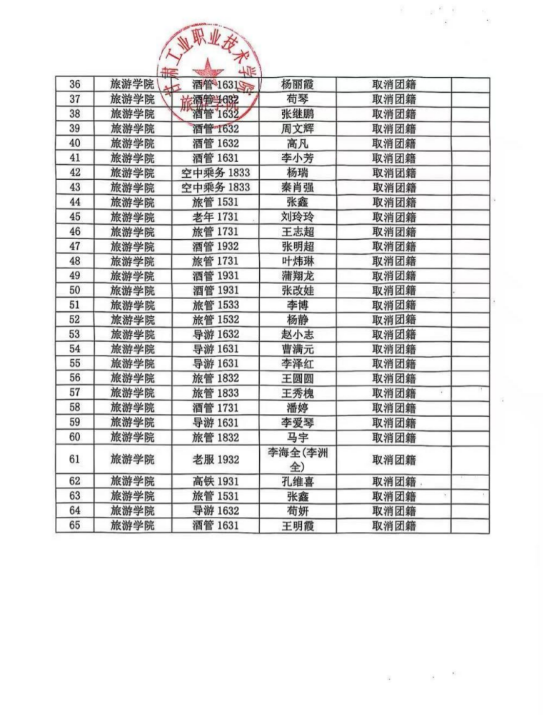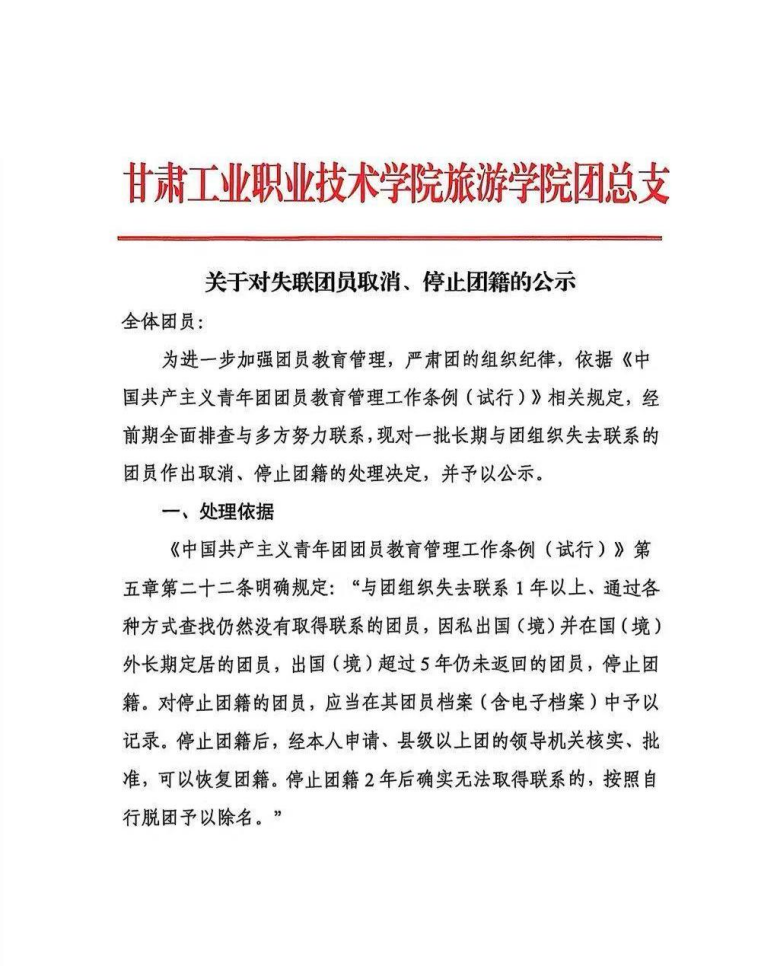 关于太阳成集团tyc4633对失联团员取消、停止团籍的公示